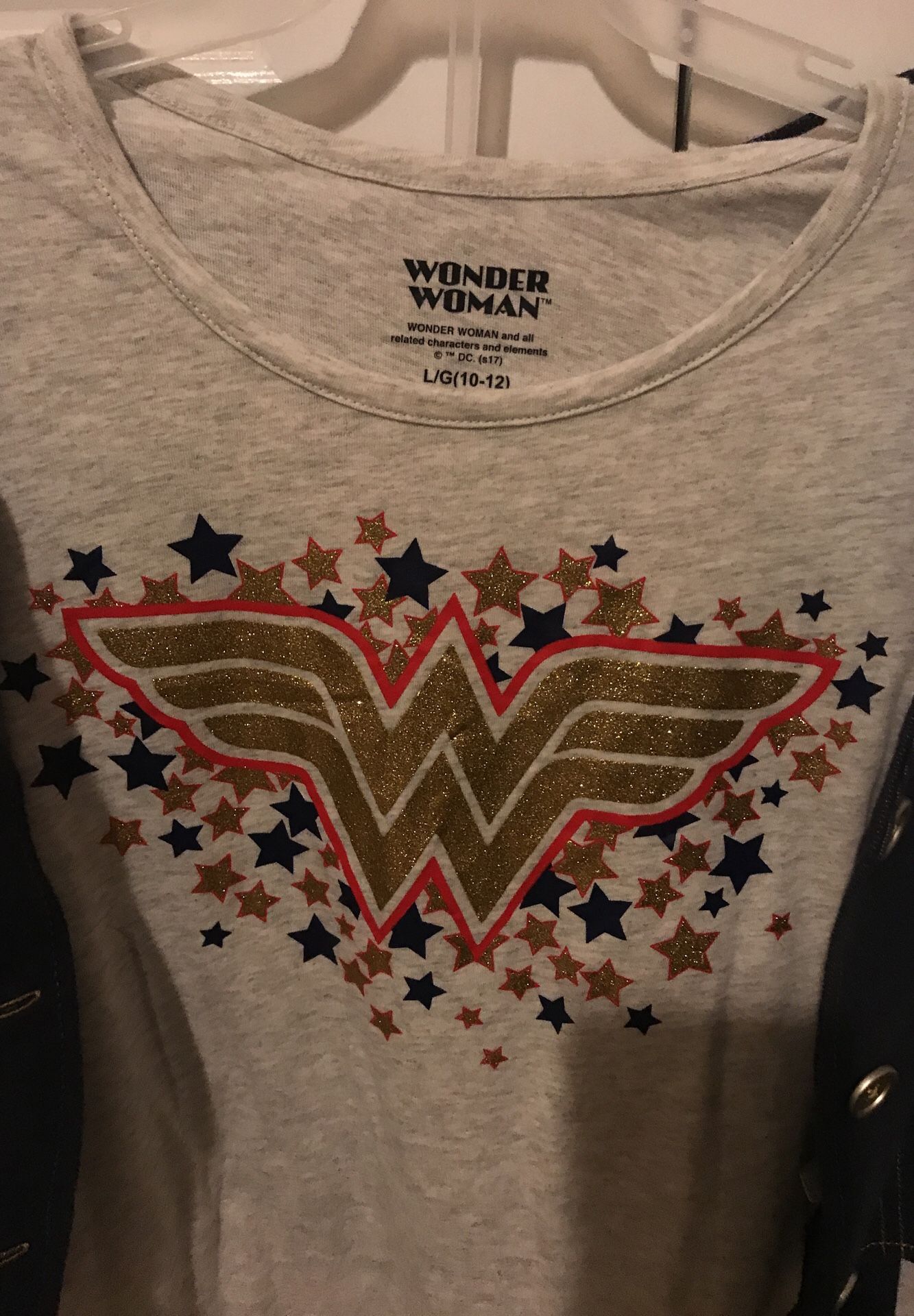 Great buy especially for DC comic kid lover. Size L 12/14. Long sleeves, vest, and pants. New.