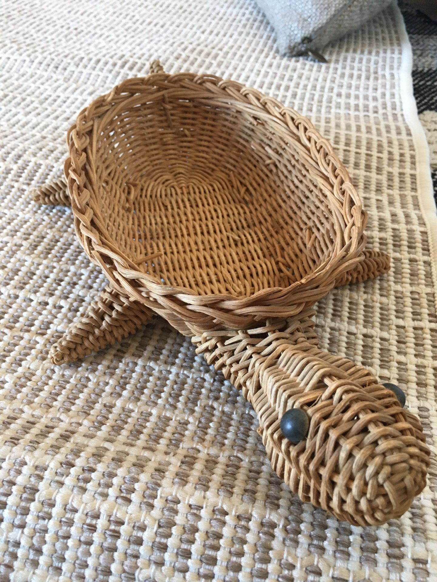 Vintage wicker turtle Length from head to tail : 12in Very cute! Can be used as a planter Hold your keys Decor Boho Woven Vintage Rattan Wicker MCM