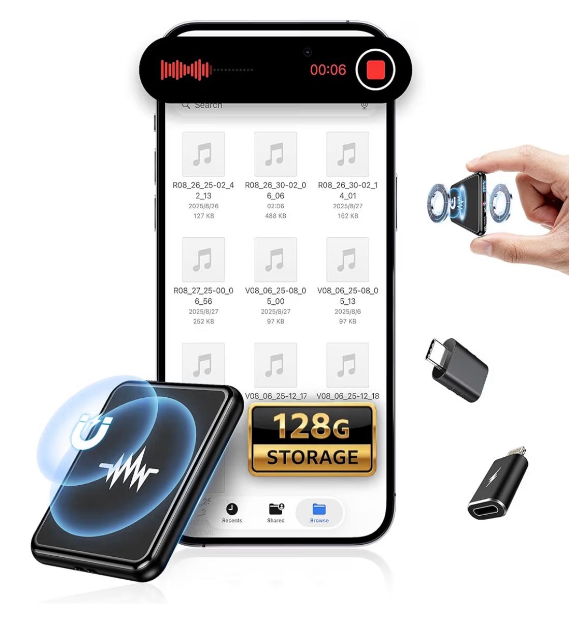 128G (9800 Hour) Voice Activated Recorder, Double-Sided Magnetic Voice Recorder with Playback, Audio Recorder with AI-Intelligent Noise Reduction, 70H Continuous for Lectures, Meetings Brand new