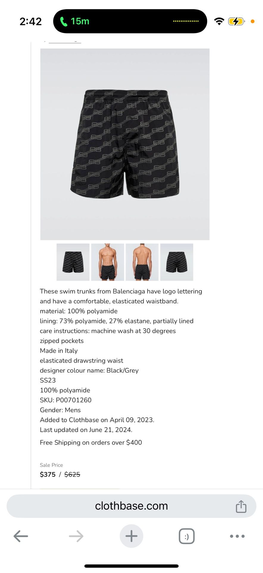 Balenciaga Men’s Swim Trunks (size M)