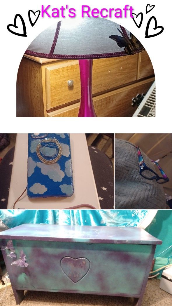 I can bedazzle just about anything. Remake. Redo. Re-craft. I take the old & dusty & make it bright & ohh shiny. I can decorate anything from eye glasses, to sneakers, boxes, phone cases, lamp, furniture, clothing, ashtrays, butane torches, BICs, etc.