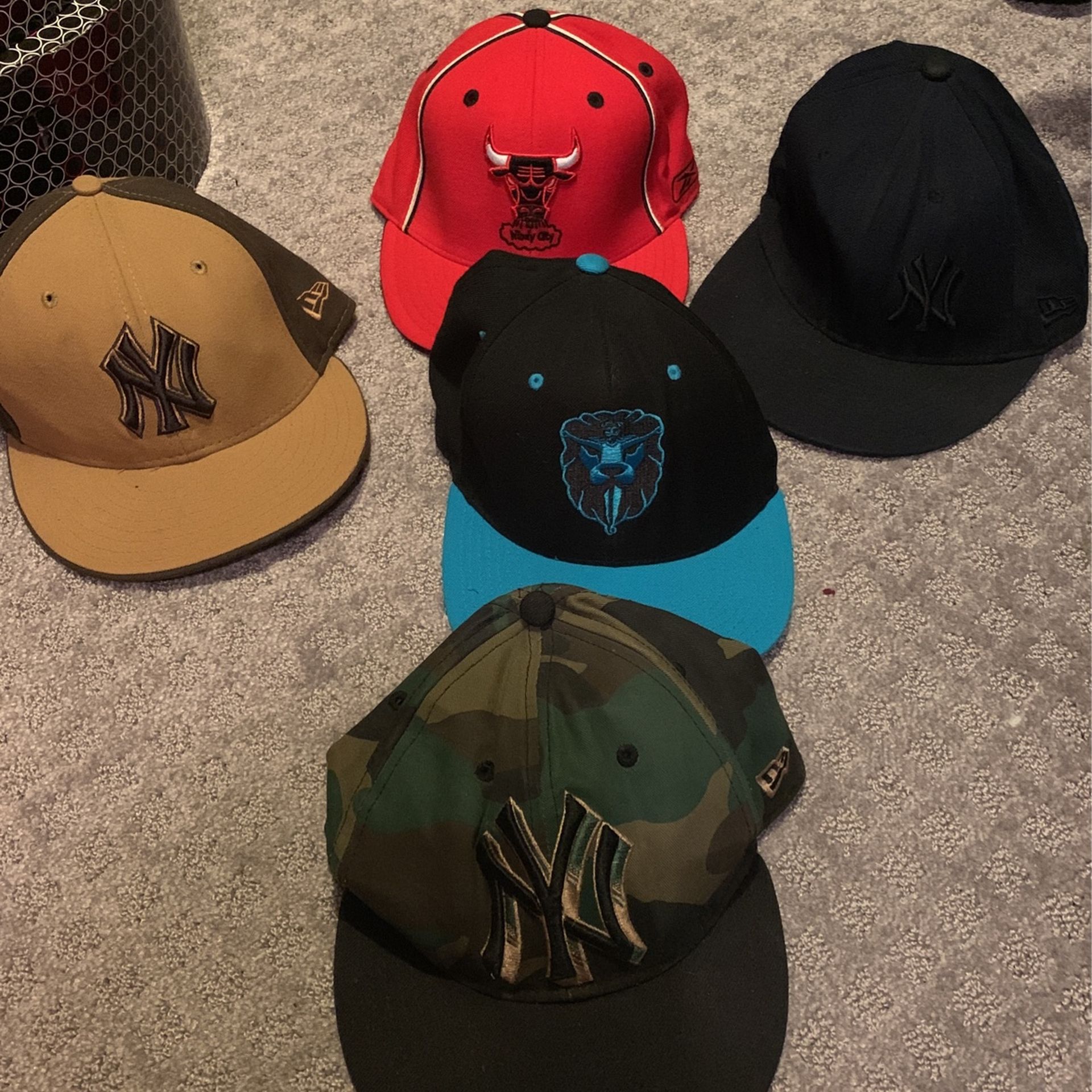 Fitted hats are 7 1/4. Blue & black is SnapBack $10 each