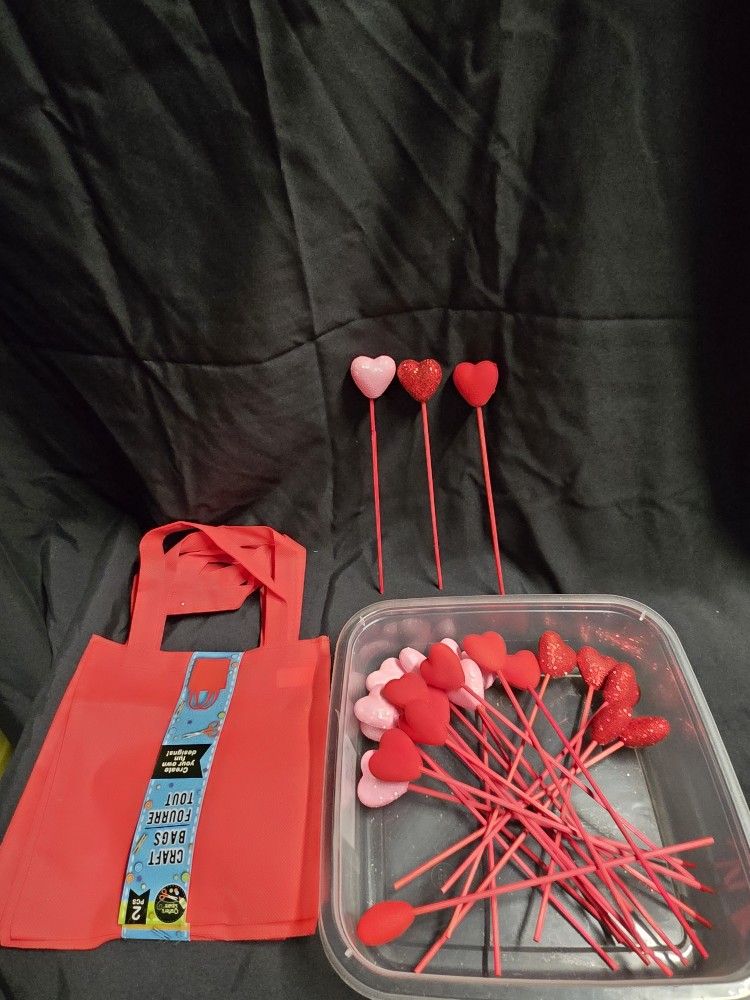 24 count assorted heart skewers and 4 red gift bags.