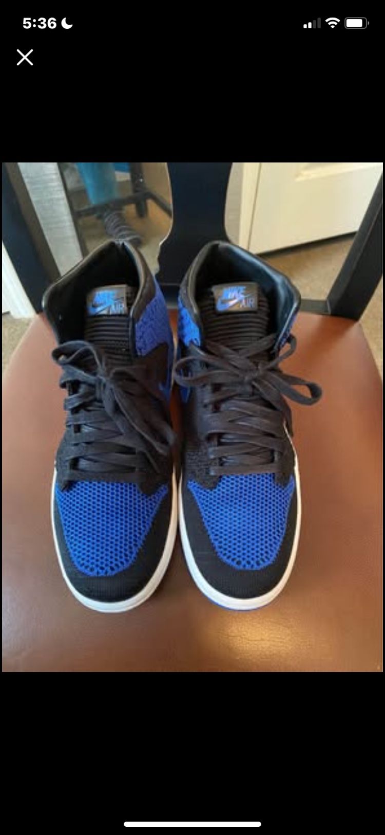 Size 6.5 Youth and size 8 in women’s cash payment only thanks Air Jordan 1 design with a lightweight, flexible Flyknit upper in a black and royal blue colorway. Nike Air Jordan 1 Retro High OG Flyknit in the 'Royal' colorway cash payment only