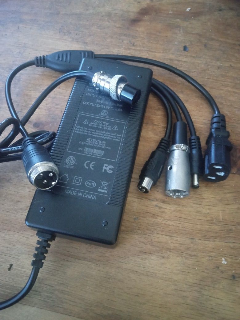 AC ADAPTER CHARGER WITH 3 PIN FEMALE CONNECTOR 5 IN 1 ADAPTER DIFFERENTS MODELS FOR ELECTRIC BIKE & SCOOTER 54.6 VOLTS - 2.0A