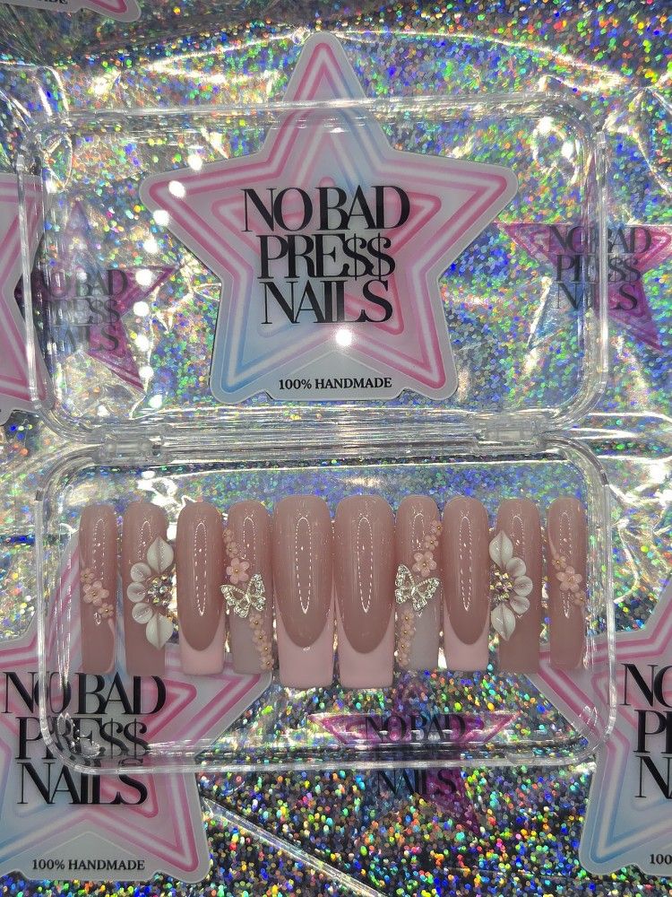 XL Coffin Pretty Pink Nails 🩷💅 with Flowers🌸 and Butterfly🦋 Charms 🩷Goodies For On the Go Application 🩷 ✨️Nail stickers ✨️Small nail file ✨️Cuticle pusher ✨️Buffing Block ✨️Alcohol wipe ✨️Cuticle Oil Ca$h and Ca$happ accepted 💸 Pick up on 61st Ave and Cactus 🌵 ~Or ~Local Delivery for a fee $ Thank you for supporting my small business 🩷