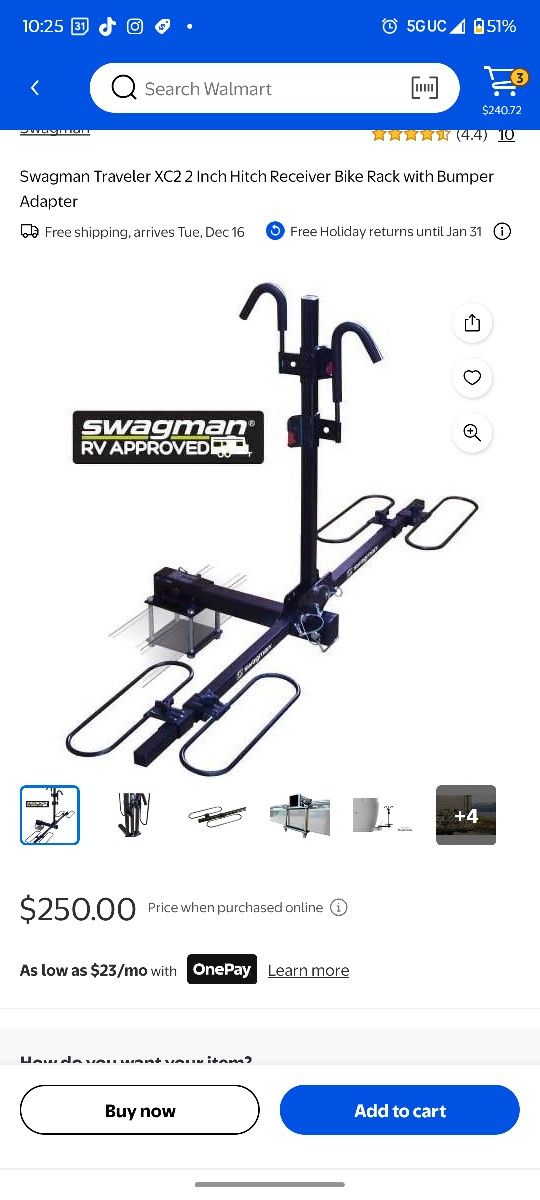 Swagman Traveler XC2 2 Inch Hitch Receiver Bike Rack with Bumper Adapter