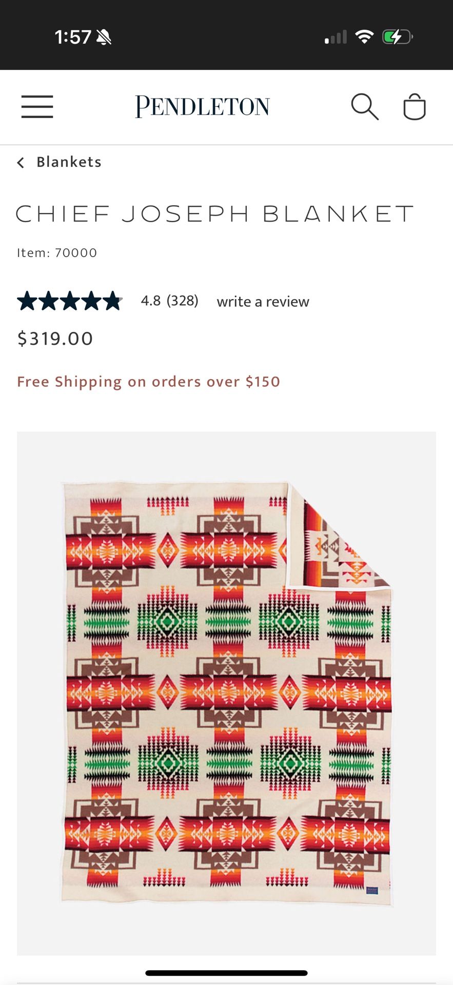 Pendleton wool blanket. Chief Joseph Blanket in Ivory. Brand new, never used, original tags intact. Size is Twin. Asking $275 obo or trade.