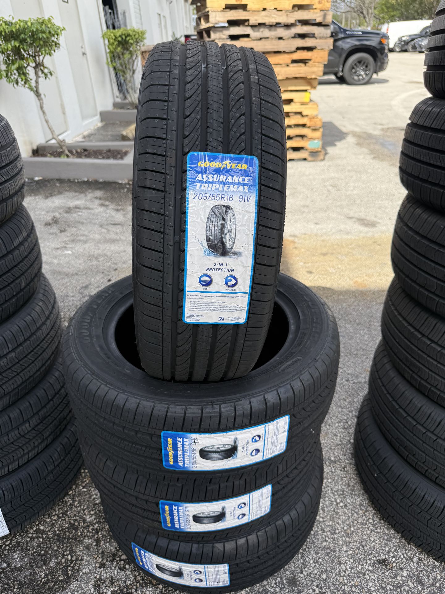 Good condition, price includes installation, Mount and balance. 205/55 R16 (Tire brand) Good Year Price: $500 (set of 4/ $125 each) Wheel Alignment available Fast same-day service For: honda civic, vw Jetta, etc.
