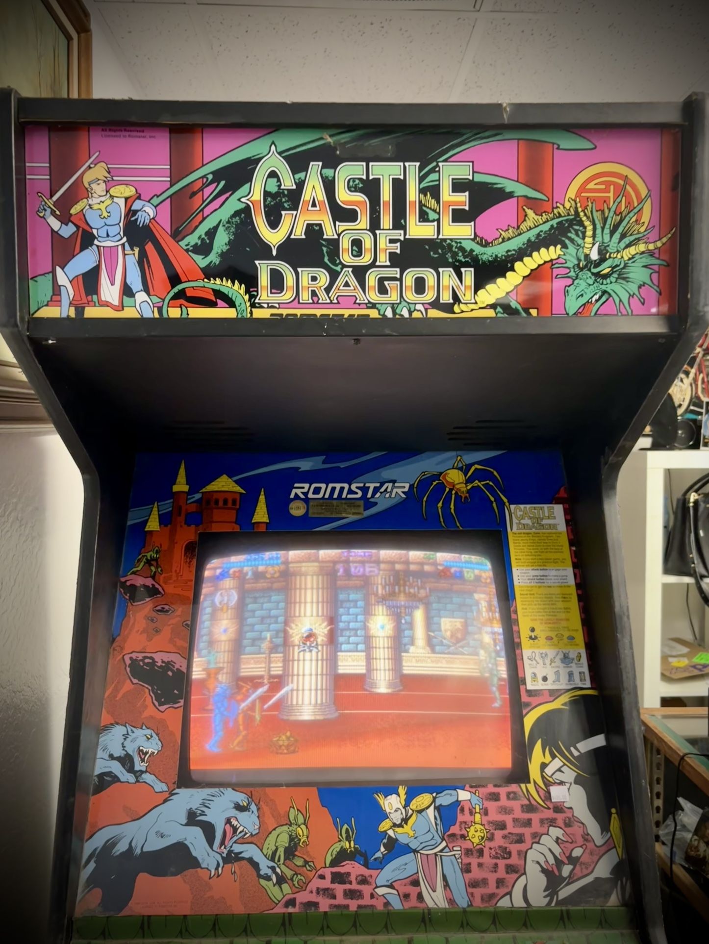 Vintage “Castle of Dragon” arcade game by Romstar! A colorful classic with fantasy-themed artwork and dual joystick controls. Fully working and ready to bring the retro magic—perfect for collectors or game room fun! Please see photos for best description.