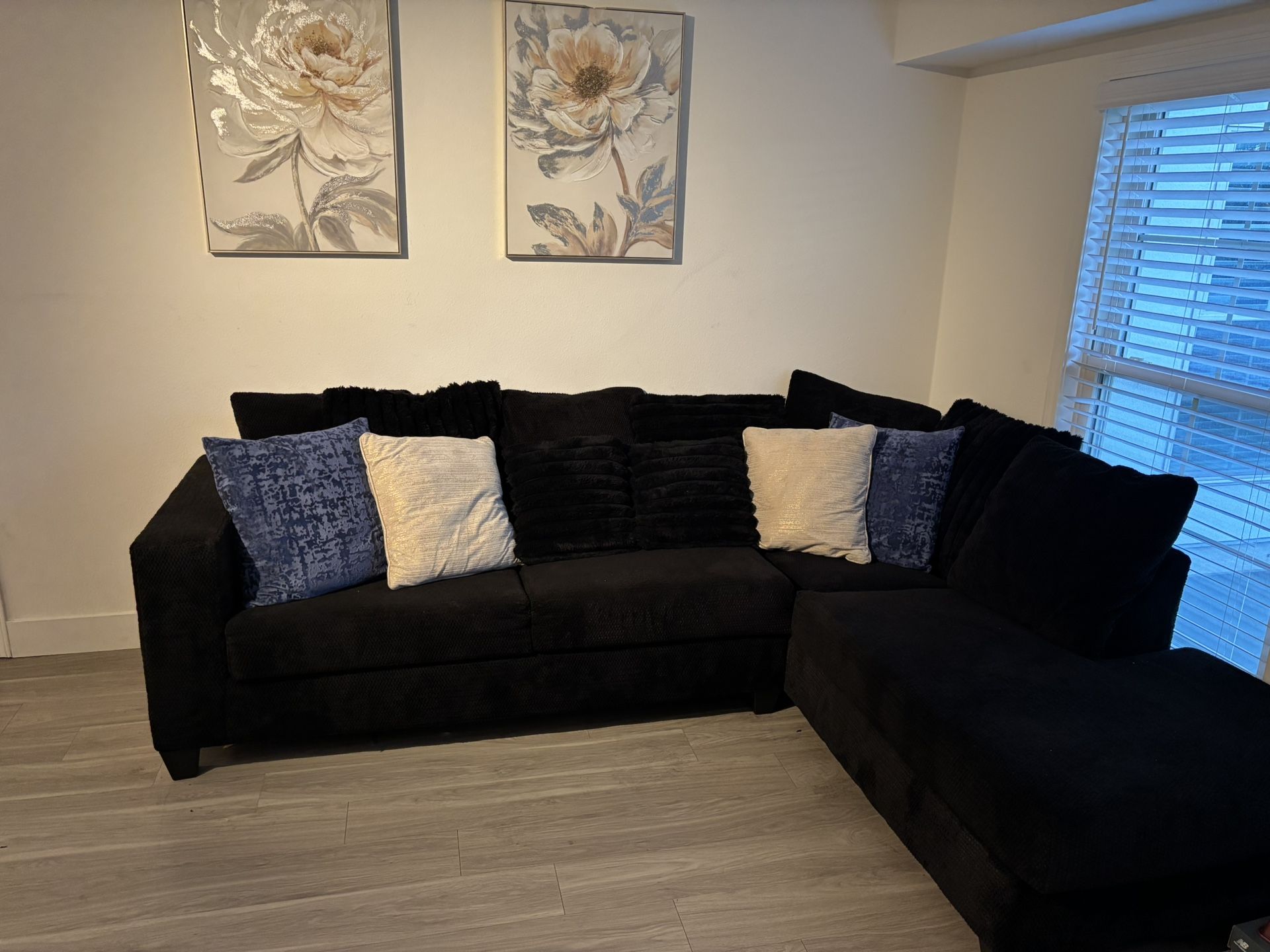 Very soft super comfortable sectional sofa Spacious. Free Pillows included ! Had about 8mnths . We’re Moving needs to be gone this month !