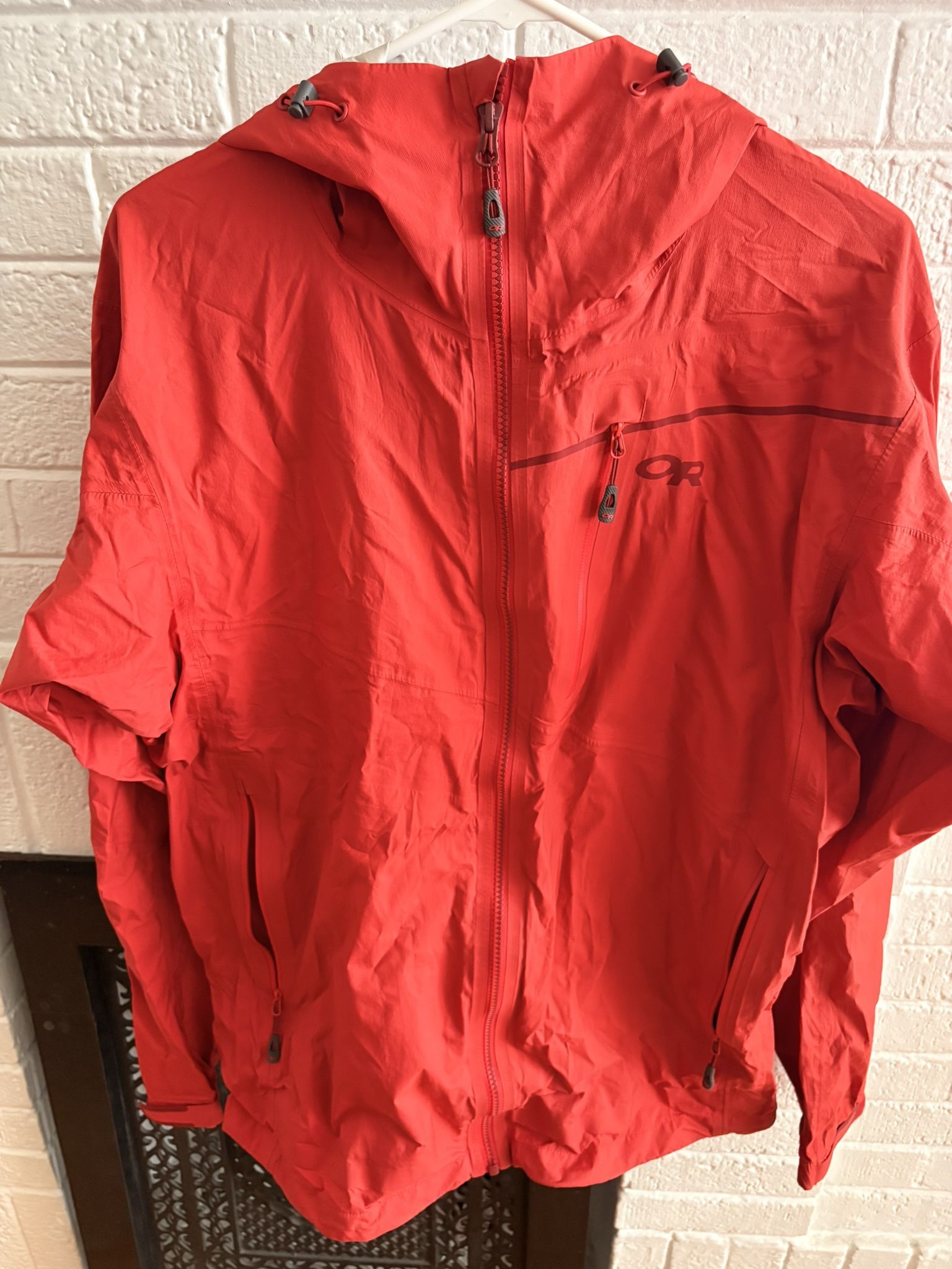 Key Features & Performance: OR Official Color: Tomato AscentShell Technology: A 3-layer waterproof/breathable fabric that is air-permeable, offering superior breathability and stretch compared to traditional shells. Mobility: Dynamic Reach underarm panels and mechanical stretch provide excellent freedom of movement, ideal for climbing and high-output activities. Lightweight & Packable: Stuffs into its own pocket with a carabiner clip, making it easy to carry. Design for Activity: Features like harness-compatible hand pockets and a helmet-compatible hood enhance its utility for climbers and backpackers. Versatility: Performs well across various conditions, from drizzle to heavy rain, though not for extreme mountaineering. Considerations: Durability: Some reviews note that it's less robust than premium shells, and its lightweight zippers may lack extreme durability. Weather Protection: Excellent for most conditions but may not match the wind/water resistance of top-tier Gore-Tex Pro jackets in severe, wind-driven storms. In essence, the Interstellar delivers excellent performance and value for active users needing a mobile, breathable, waterproof jacket for versatile mountain sports, especially if lightweight and packability are priorities.