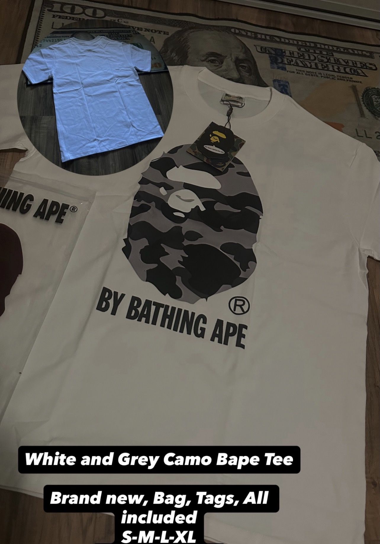 White And Grey Camo Bape Tee Sizes S,M,L,XL