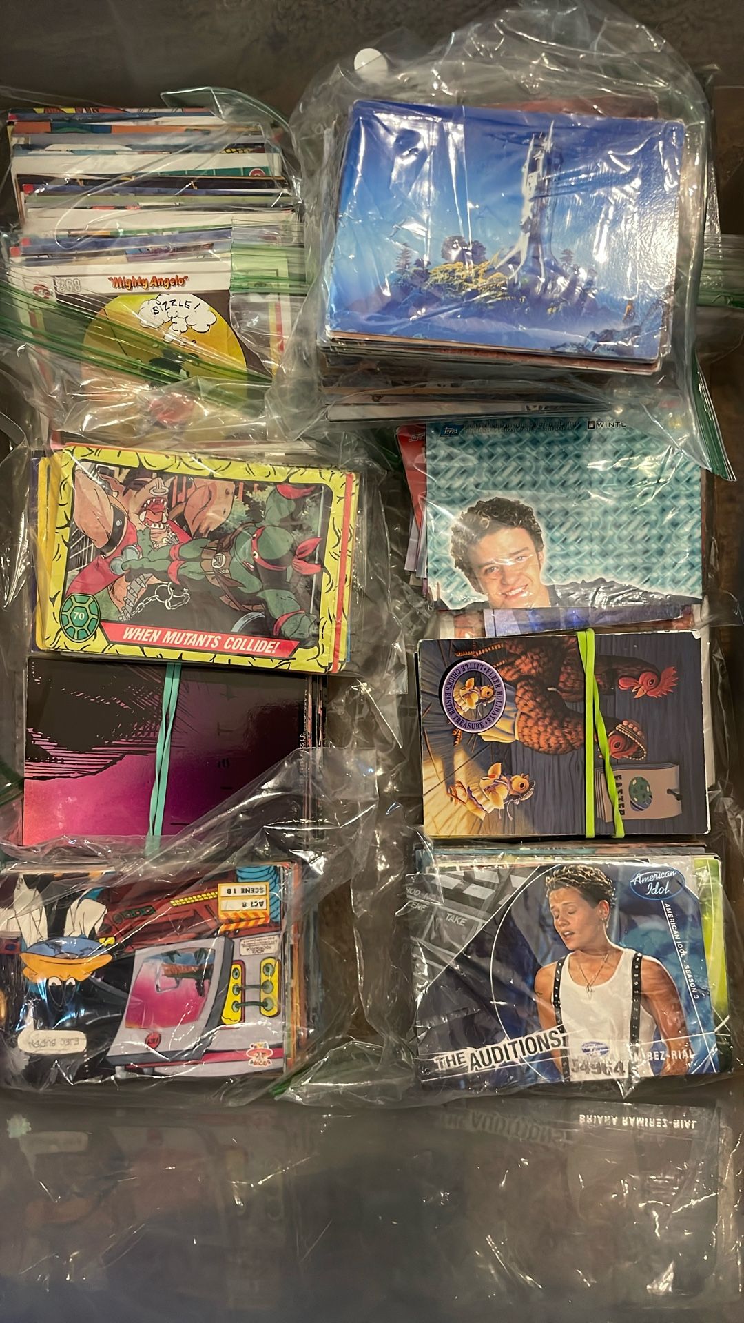 There’s cards, some stickers and a couple of temporary tattoos. There’s lion king, hunchback of notre dame, Jurassic park, Pocahontas, looney tunes, American idol, free Willy and a few more.