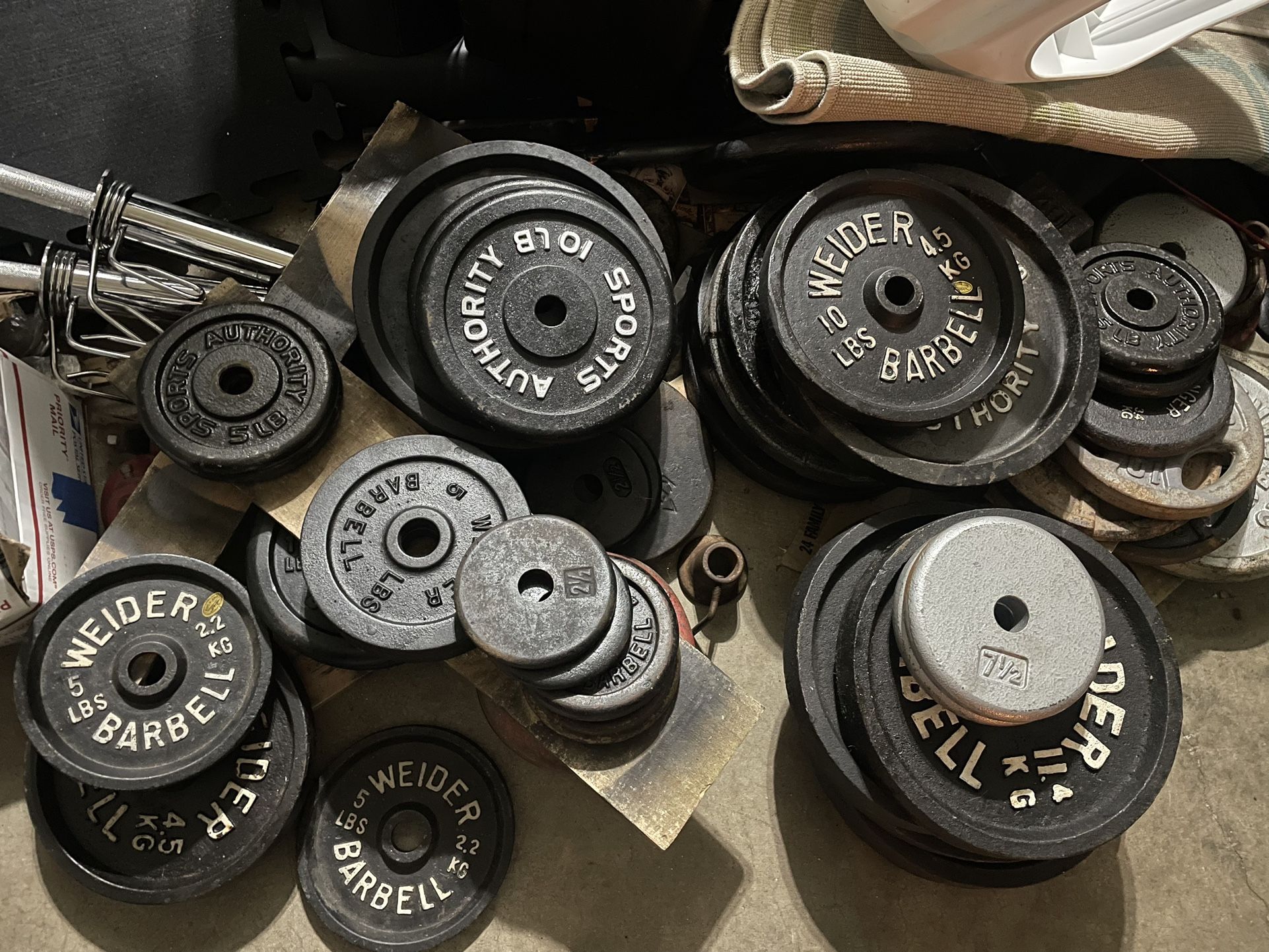Assorted iron weight plates of brands and sizes. All have one inch hole. $1 a lbs for metal plates. Various weights to complete an odd pair of yours or for home gym or other need. Available is are a multiple of 10, 5, 3, 2.5 and 1.25 lbs plates. single 25, 13.2, and a 2.2 lbs plate. I also have single Olympic 25 lbs plates. Pick up in Alpharetta /Johns Creek.