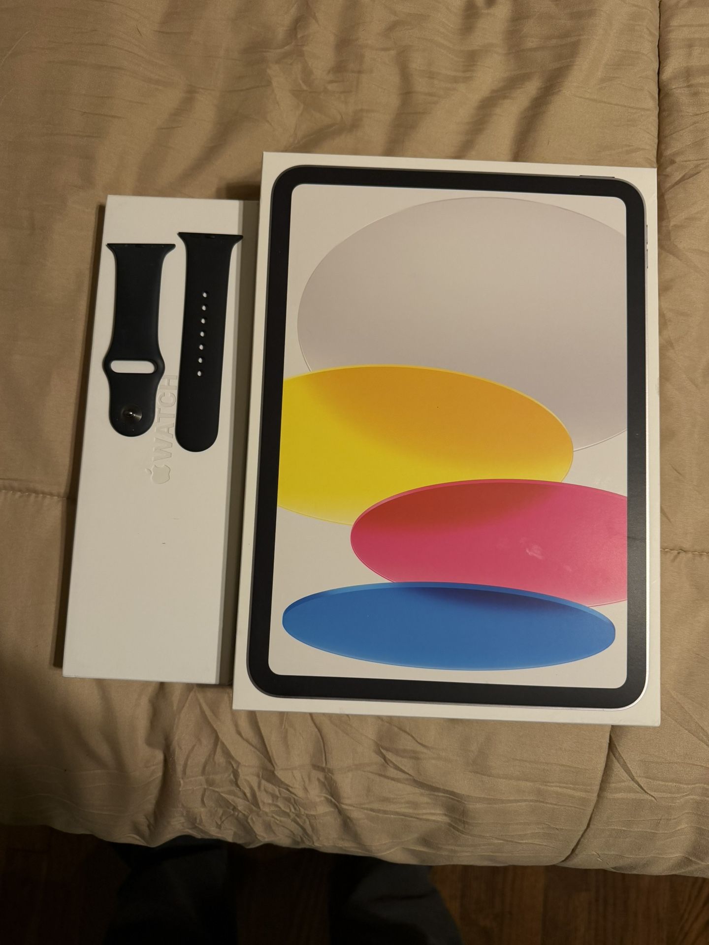 The Watch was worn once realized it wasn’t for me, the iPad has never been used but it has been open and activated. iPad comes with original box, charger, case and extra glass screen protectors, the watch comes with link style watch band, original band, charger, screen protector/bumper, and original box. 800$ OBO perfect Christmas gift!!!