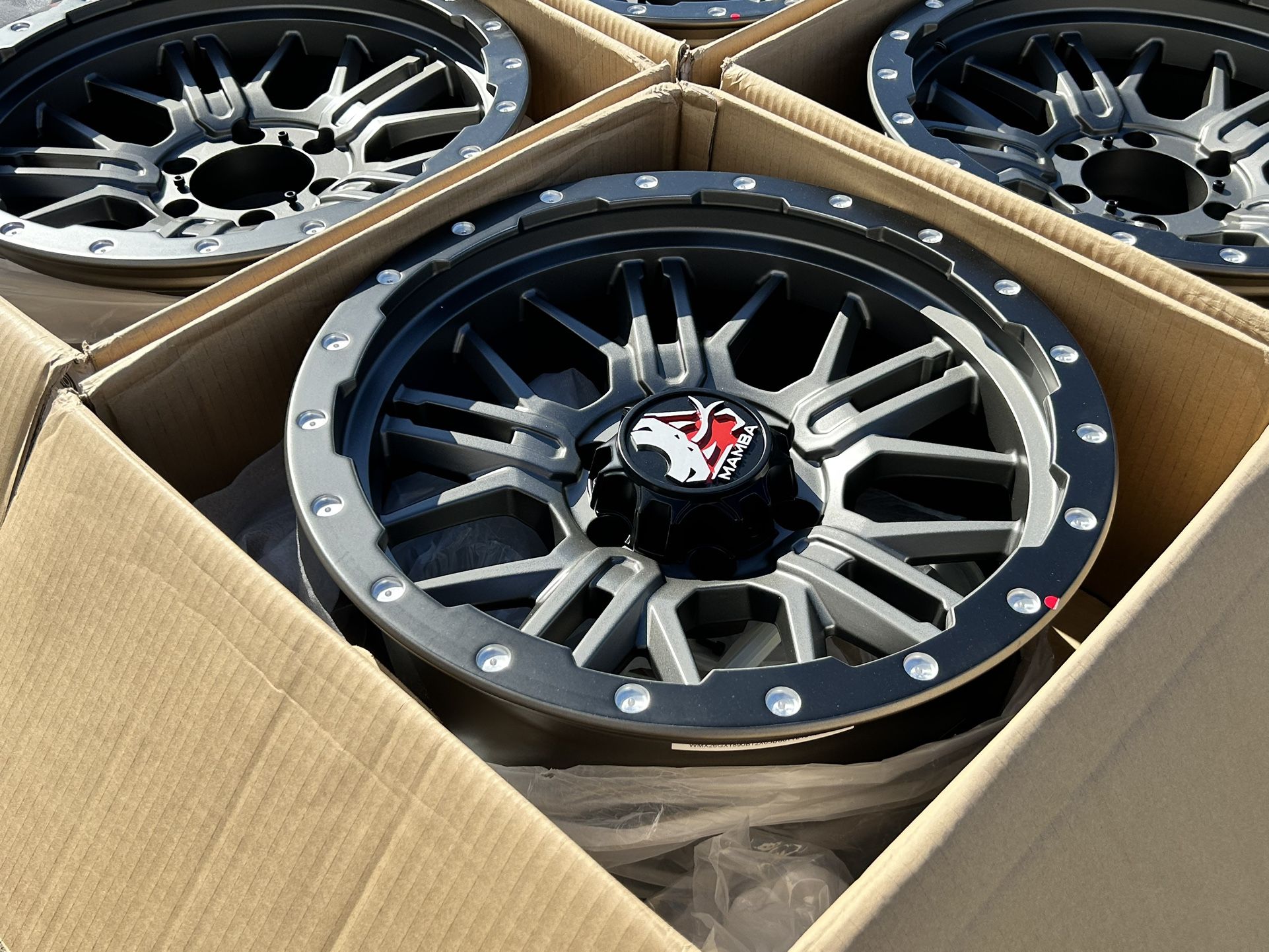 (4) NEW Mamba Offroad Rims M25 Matte Gray with Black Lip 6-Lug Wheels 18x9 -12mm new in box never used 6x5.5 fits Chevy GMC Toyota 106.1 center bore firm price