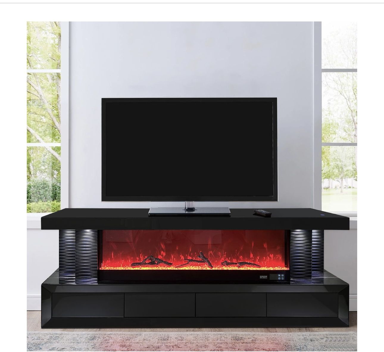 Mirror, LED, Multi-Colored flame Dimensions 71.0 × 16.0 × 25.0 in Material Mirror, Wood available in 2 different color black and gray extra for delivery for payment we accept cash or zelle financing available