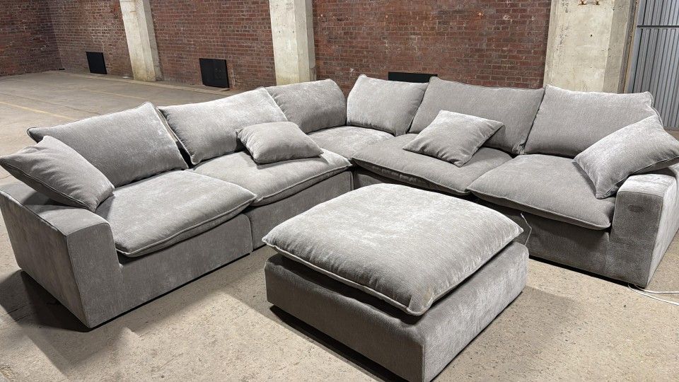 Sereen Modular Taupe Sofa by Kaka HK Trade Co. LTD Basically brand new 5-seater sofa with ottoman for sale. Original price: $2,399.99. Our price: $1,550. We work with liquidated return, floor model and overstock items. This specific sofa is so new and in such good condition I don't believe it was ever sold or used. Delivery options available.