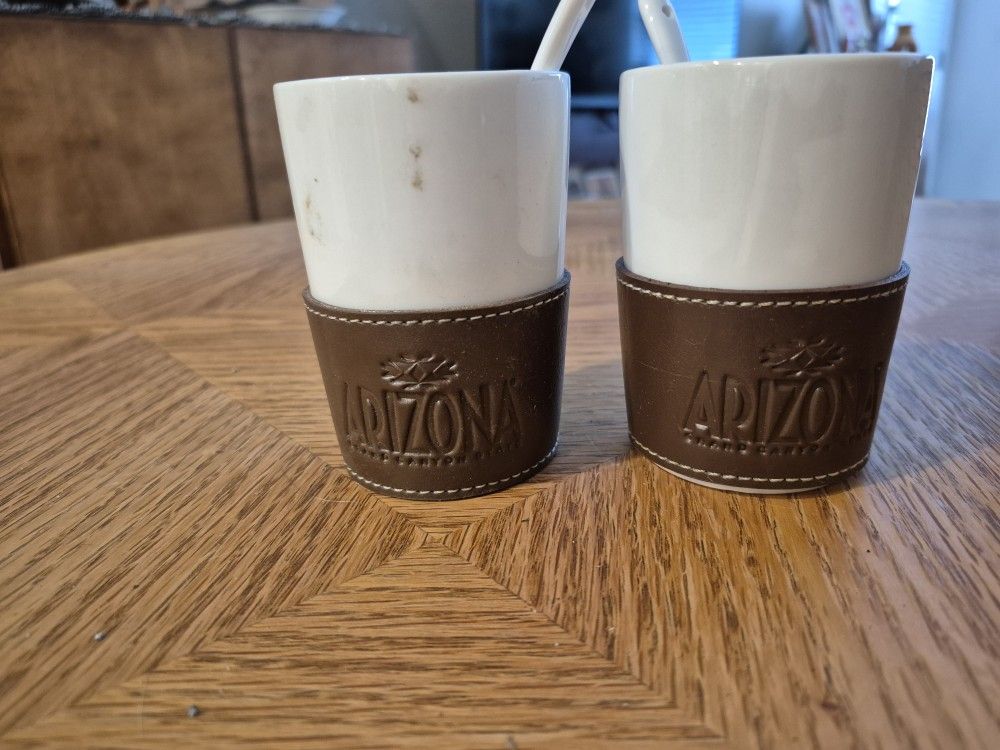 White ceramic with leather bottoms IF IT'S POSTED IT'S AVAILABLE SERIOUS BUYERS ONLY