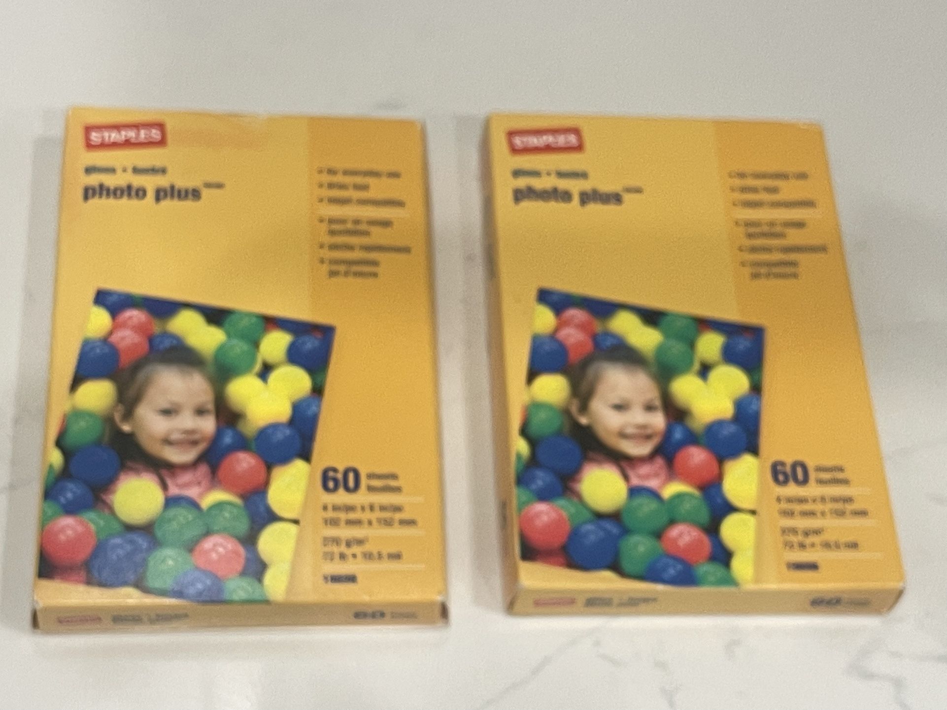 Staples Photo Plus, 4 X 6 Inch Glossy Photo Printer Paper 2-Packs 60 Sheets each. New