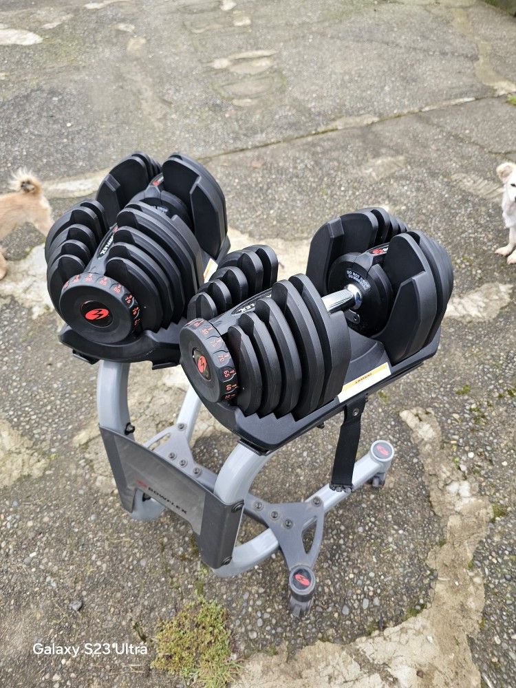 New never used Bowflex Dumbells 10-90 With Stand Dumbells is a new Cash only please