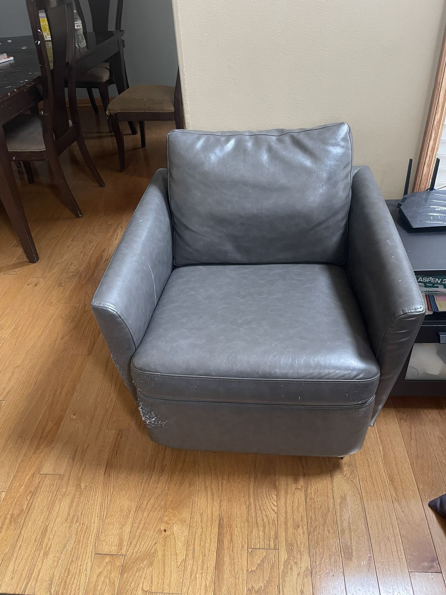 Gently used. Has scratch on the side from my cat (see picture) It works great and spins