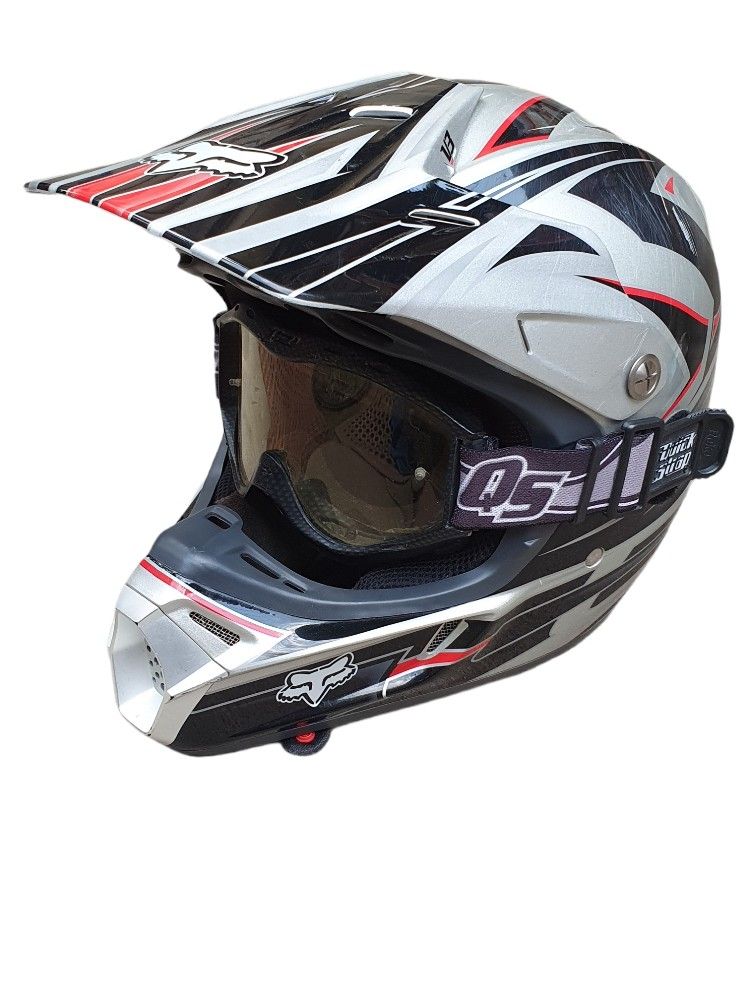Fox Racing Helmet V3 Pilot Size Small, Original V3 Bag Included, goggles are not included. "Used" it has some wear and tear but you can put stickers over the scratches to hide it. It has lots of life left. Inside is clean.