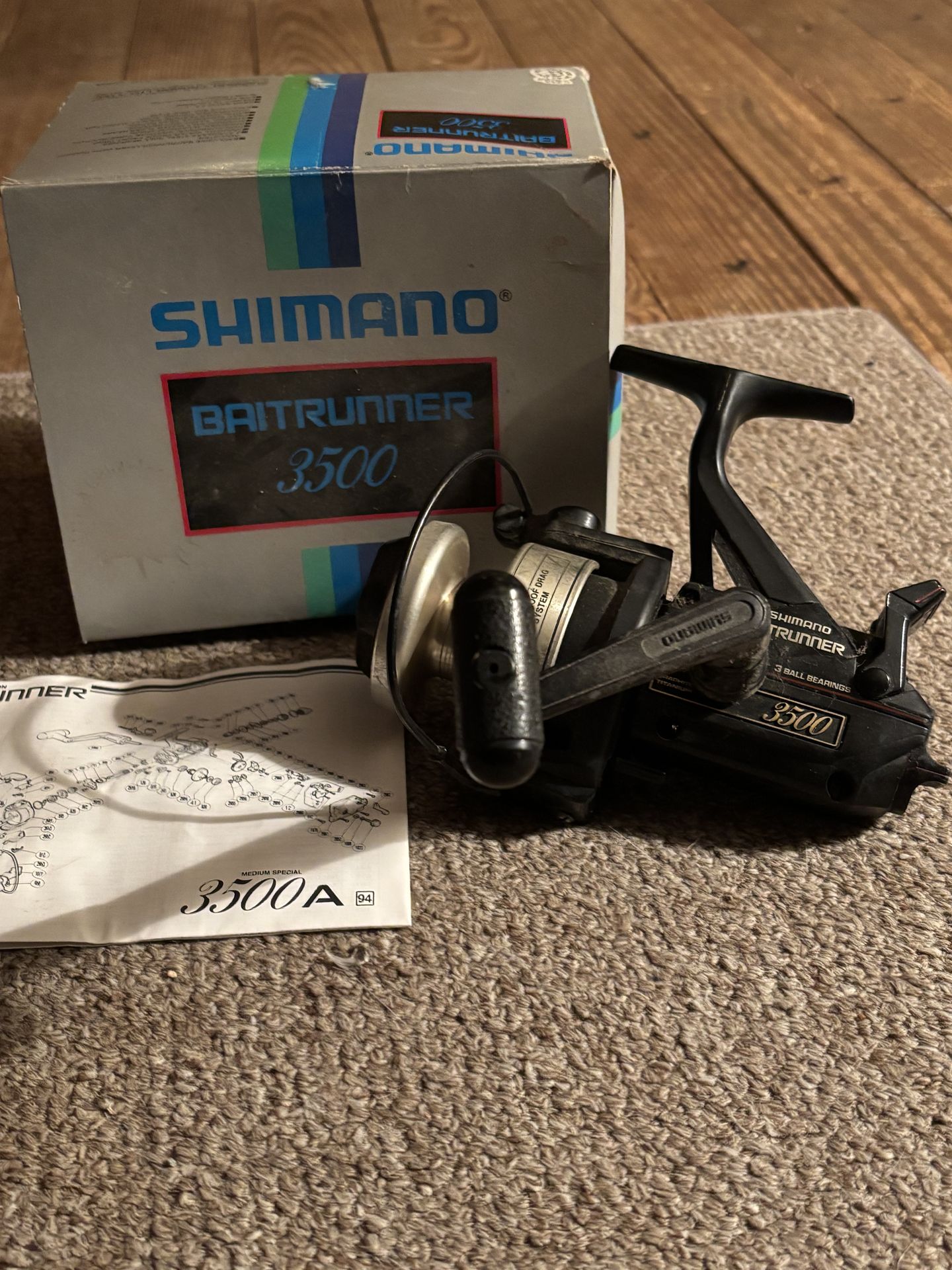 Shimano Baitrunner 3500 spinning reel. Used but still operates great. Willing to trade. Looking for Shimano stratic 2500