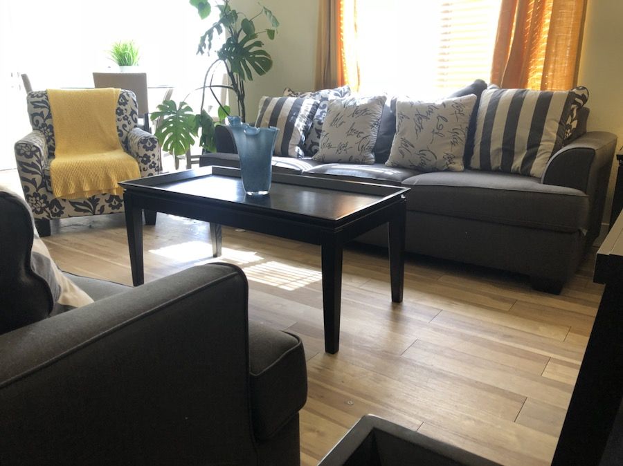 3 piece living room set. Includes sofa love seat and accent chair. Paid close to $1500 for the sofas and accent chair. Also would like to include end tables and coffee table for an extra $100. Bought this set new a year ago from Ashley furniture. We are moving and need it all gone. Condition is used and good condition! Willing to include lamps for an extra $100 I paid $100 each.