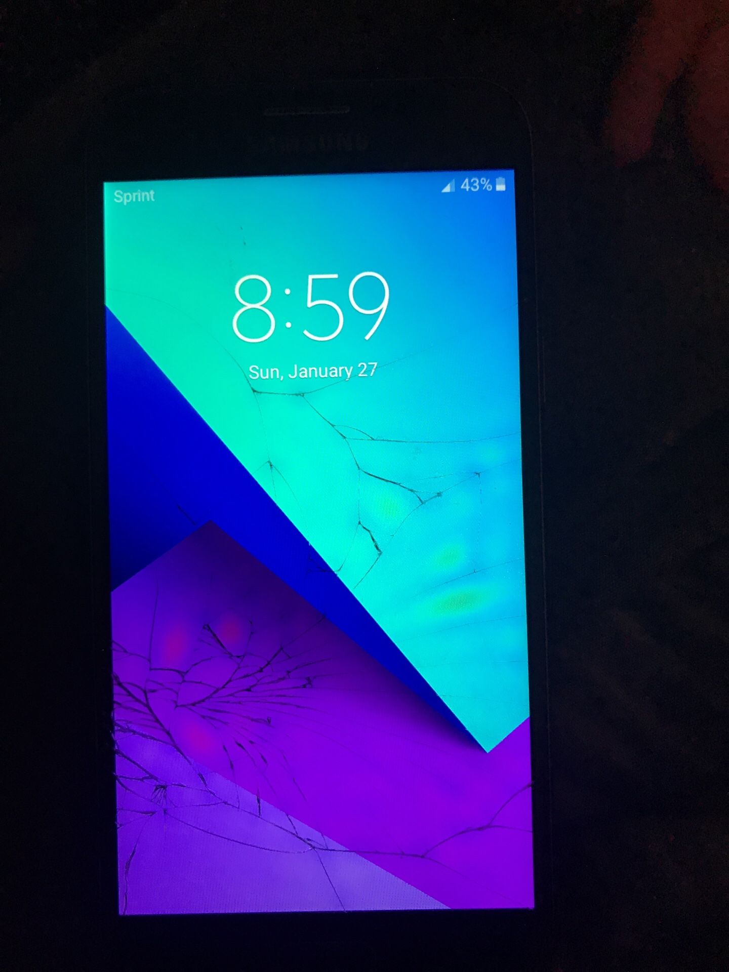 Samsung galaxy J3 emerge cracked screen but everything work fine used for Sprint