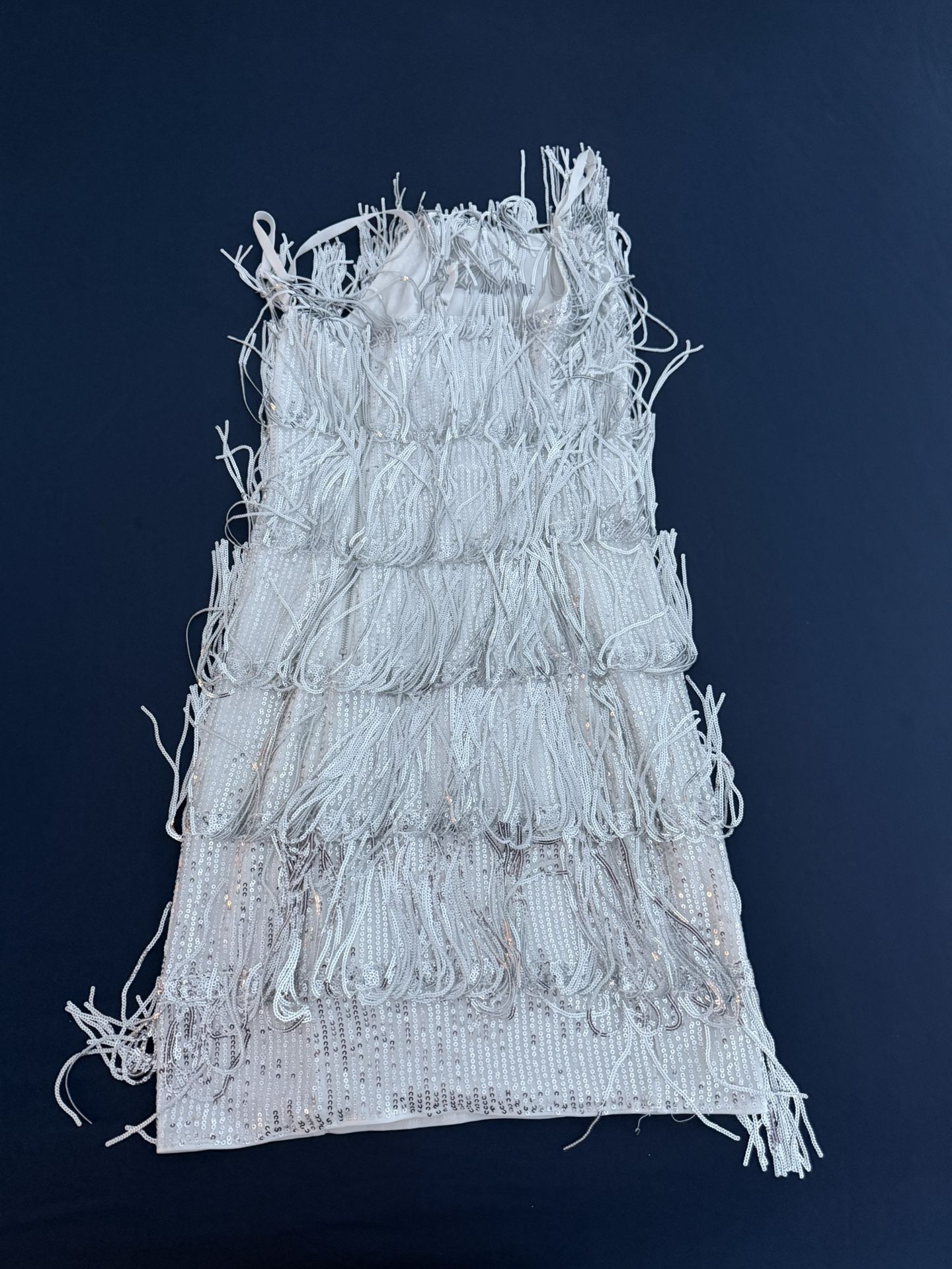 Three dresses for the price of one: Silver sequin midi dress with fringe, colorful spring dress, and poker dot dress #party #glamour #eveningwear Cash and pick up only