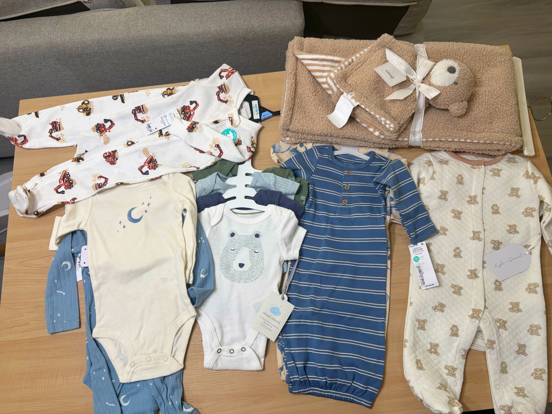 Baby Boy Clothes all NEW and a Soft bear Blanket. Sizes range from Newborn-6months everything for $25
