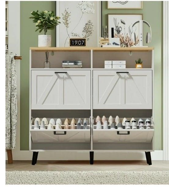 Shoe Cabinet Storage for Entryway, Narrow Shoe Rack Cabinet with 4 Flip Drawers, Freestanding Hidden Shoe Rack Storage Organizer, White Color