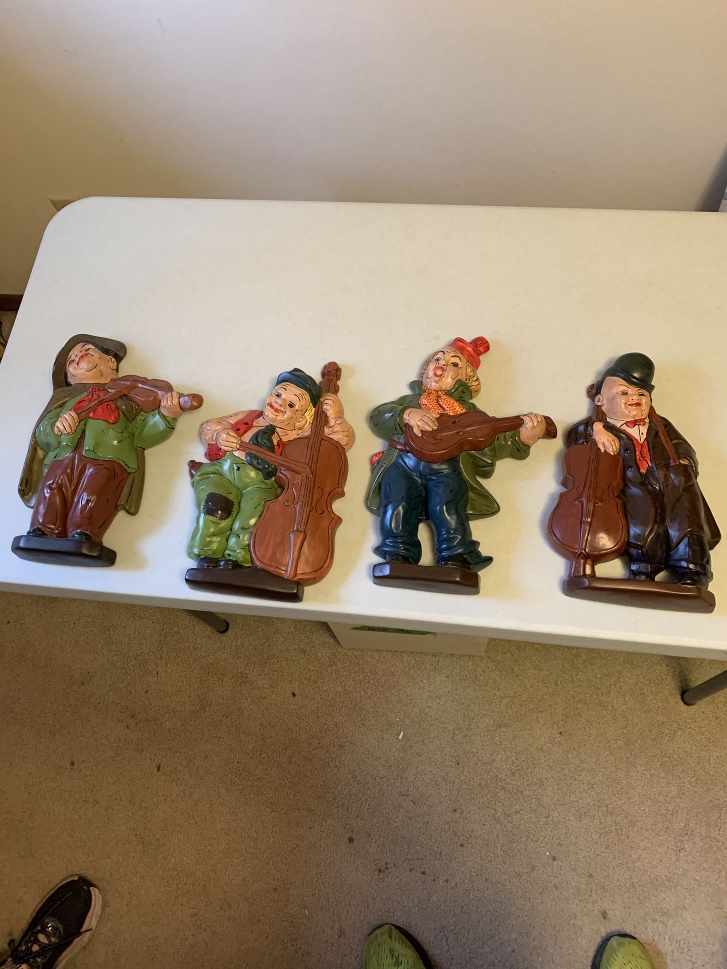 This is a mid-century, hand-painted, suuuuuuper cute hobo wall hanging collection. These spent the last 50 years in a storage box in family’s basement. I don’t know what to say except they are an amazing representation of mid-century Americana. I love them but have way too much stuff. Please rescue me from my dark storage box and show me to the world! Each about 12 inches tall. Cash only please. NO Venmo! Initially e-mail/chat only to start. Please no trades, I have too much stuff already. Thanks.