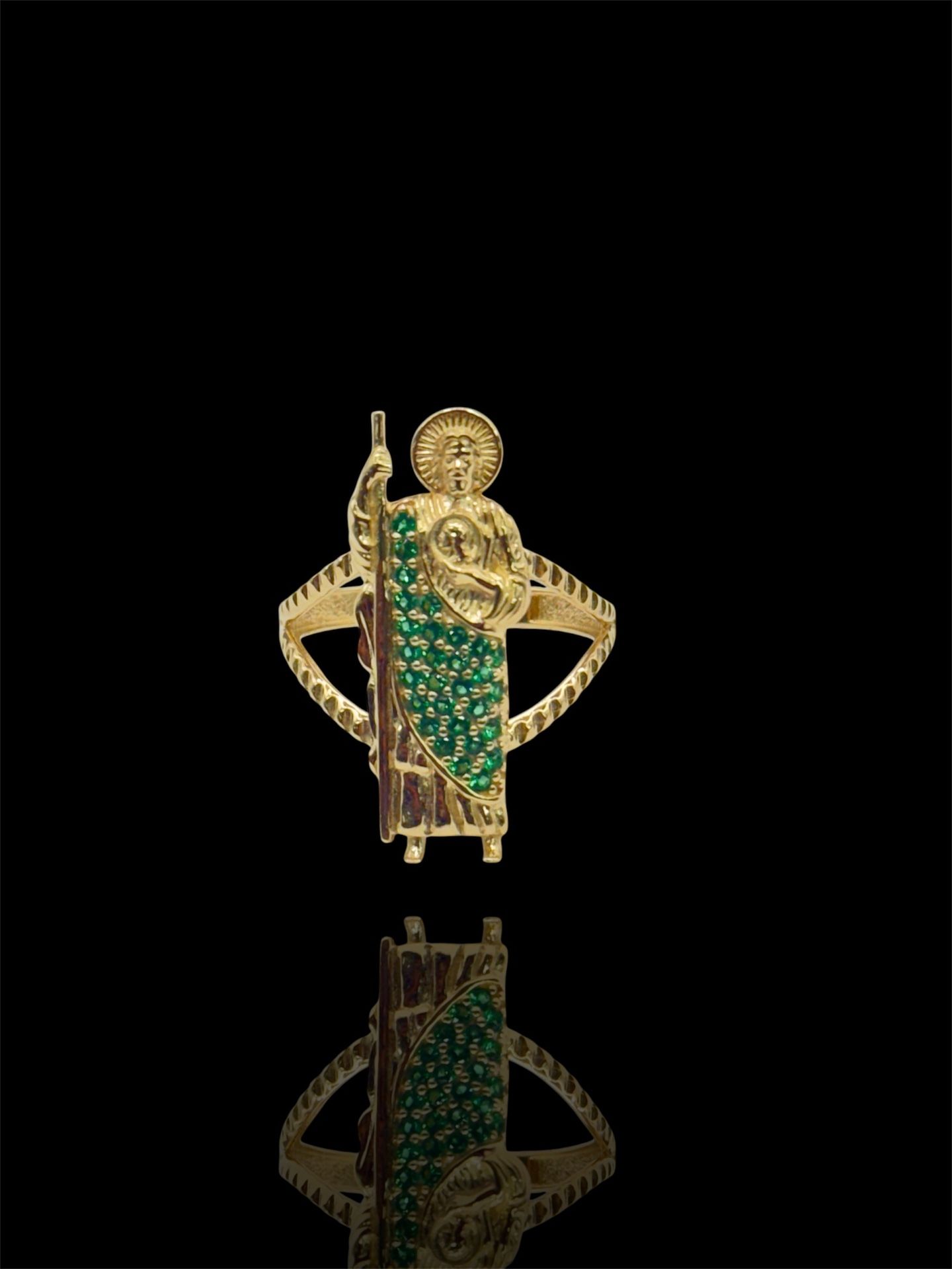 ANILLO DE SAN JUDAS TADEO CON PIEDRAS ZIRCONIAS ORO DE 14k!