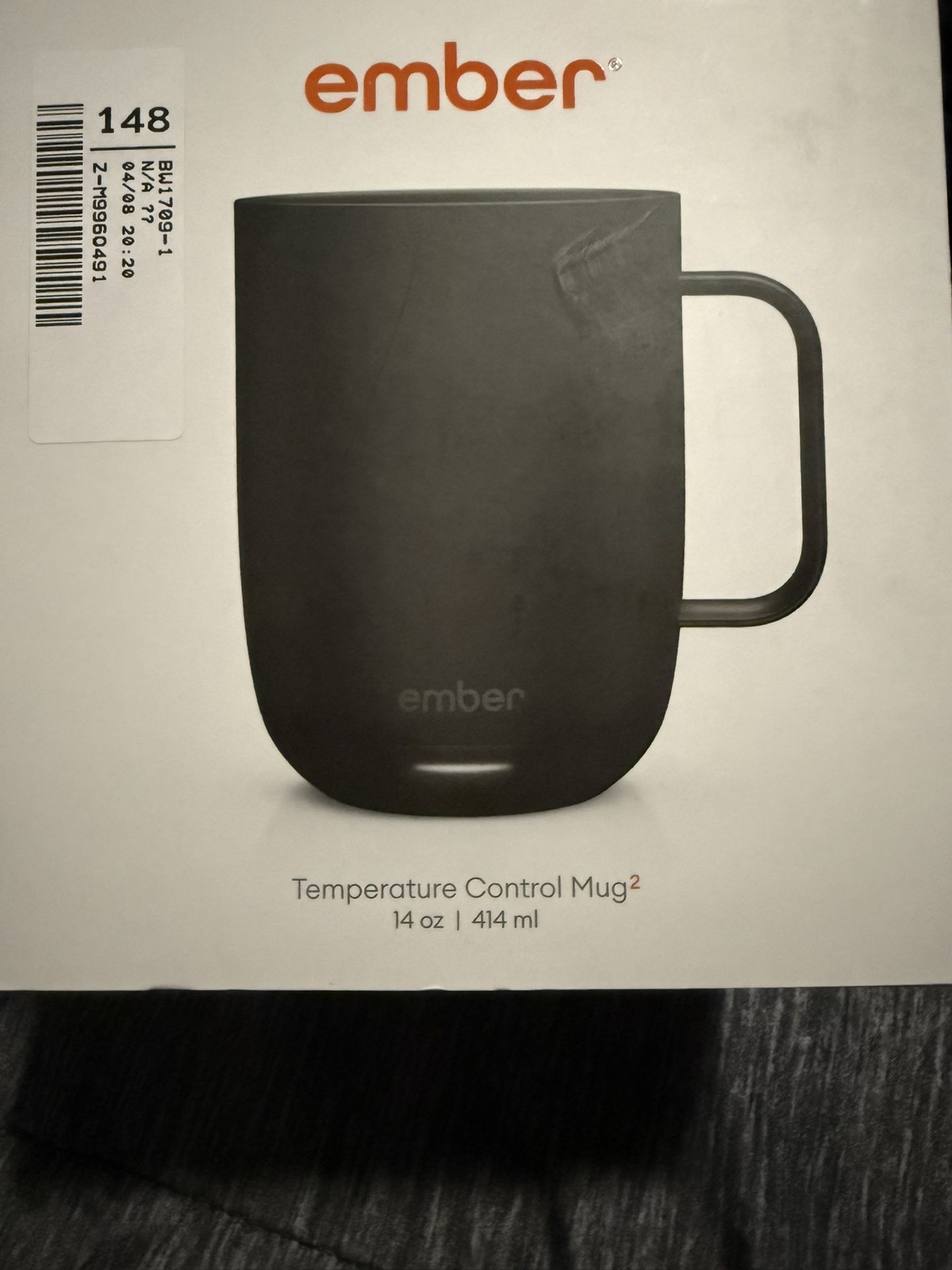 New/Open Box (Tested) Retail: $129.99 Size: 10oz Color: Black Designed for home or office, this temperature control Ember Mug does more than simply keep your coffee hot. It allows you to set an exact drinking temperature, so your coffee is never too hot or too cold. Ember maintains your chosen temp for 1.5 hours so your beverage stays perfect to sip. Its sleek and modern design looks great in any setting. The temperature control smart charging coaster connects to your smartphone via Bluetooth to allow you to set your perfect temperature between 120°F - 145°F range. It also makes for a stylish and convenient travel mug. Set temperature of your drink and keep it at that temperature for hours with this ember temperature control smart mug.