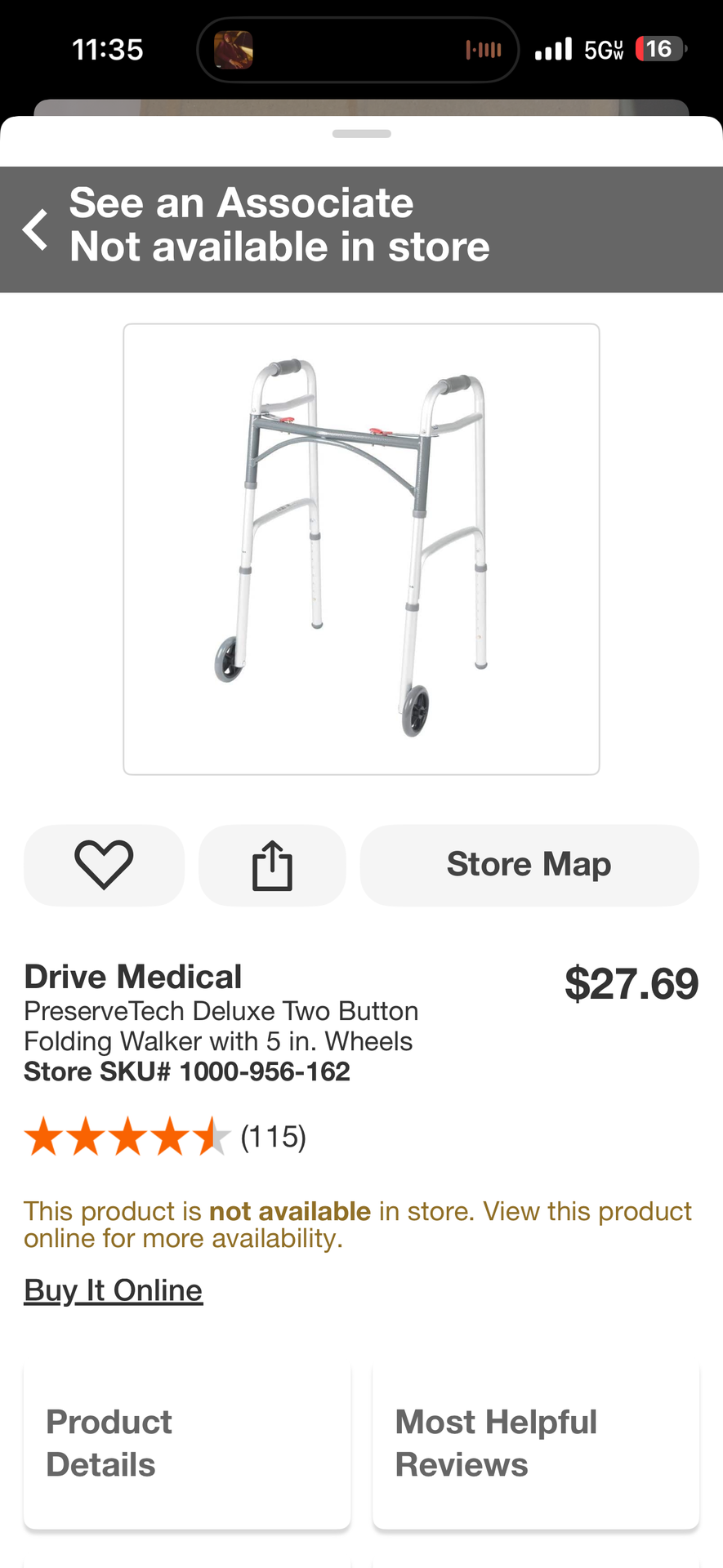 Lightweight Drive Medical folding walker with front wheels. Strong aluminum frame and adjustable height for comfort. Folds easily for storage or transport. Great for seniors, injury recovery, or anyone needing extra support while walking. Features: • Front 5” wheels for smoother movement • Two-button folding design • Adjustable height • Lightweight but sturdy • Easy to transport and store