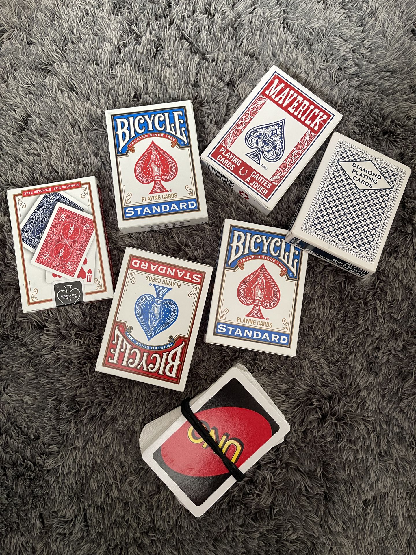 6 Pack New Playing Cards & Used UNO Deck