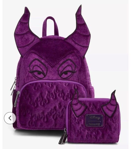 Made with a purple velvet material, this mini backpack includes figural Maleficent horns and embroidered details. Don't forget the matching wallet sold separately! BACKPACK Polyurethane Approx. 9" W x 10 3/4" H x 5" D Imported WALLET Made with a purple velvet material, this accordion wallet includes figural Maleficent horns. Don't forget the matching mini backpack sold separately! Polyurethane Approx. 5" W x 4 1/2" H Imported