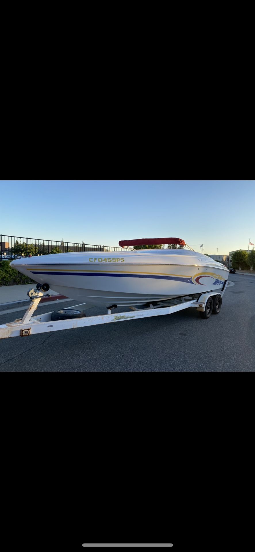 2002 baja 25 feet speed boat v8 Mercruiser with 2002 zieman trailer new tires and rims in perfect condition its has original 37 hours drive time yes only 37 hours hard to find boat new Upholstery new alpaine boat system registration up to date battery changed 6 months ago service done month ago