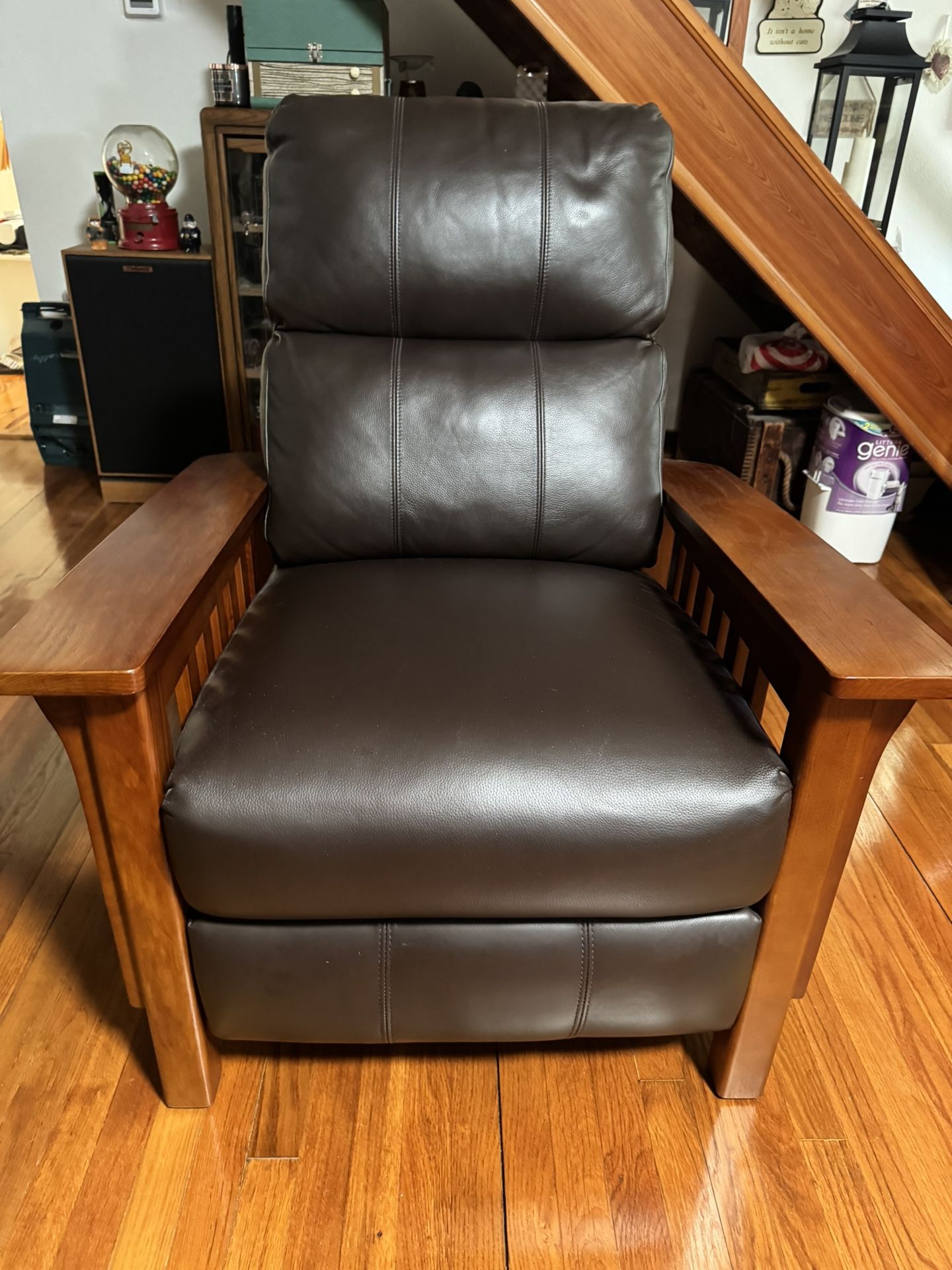 Holiday Day Sale - Harrison Leather Pushback Recliner in mint condition.