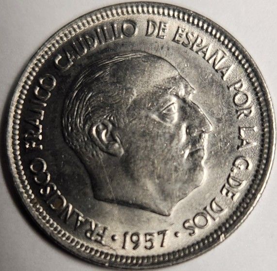 1957 Spain 5 Ptas Coin