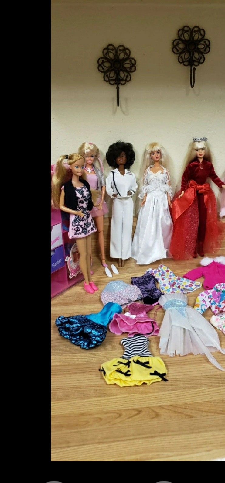 Barbie Doll's and accessories they are 6 barbies some of this barbies are vintage the African American united state navy barbie doll 1966, Very velvetred barbie outfit, barbie Doctor 1966 with doctor bag with accessories,.. barbie bride 1966,. Barbie Accessories vintage clothes and accessories closet with a lot of things for baby accessories and much more everything is in Really good conditions,....
