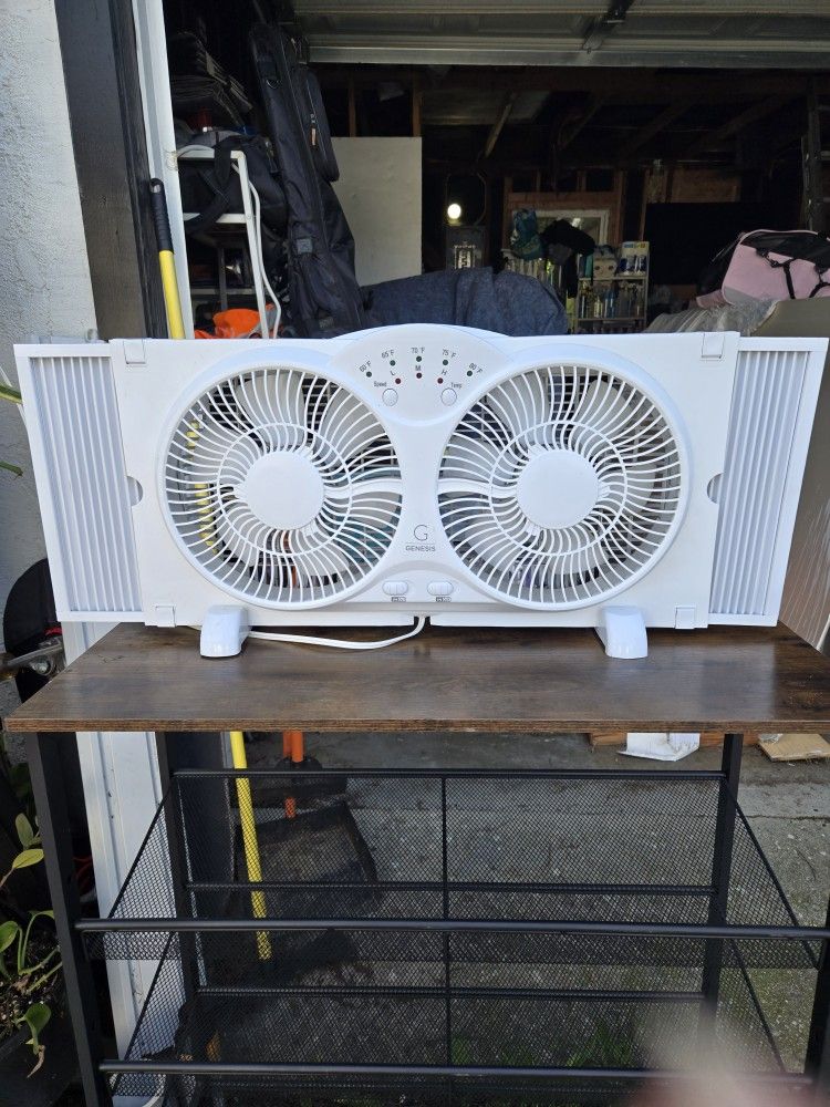 GENESIS Twin Window Fan Adjustable Thermostat Reversible Airflow 24 in. Wide