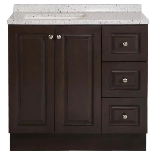 Price: $290 Product: Northwood Bathroom Vanity 📖PLEASE READ ❗️NO REFUNDS OR EXCHANGES❗️ ✅We are very transparent with our products ✅We will let you know everything before purchase just please ask!!! 📞Contact us at (contact info removed) ~Overall dimensions are 36.50 in. W x 18.75 in. D x 37.57 in. H ~Deep Dusk finish adds a coziness and warmth to any room ~Silver Ash vanity top with a white rectangular basin included