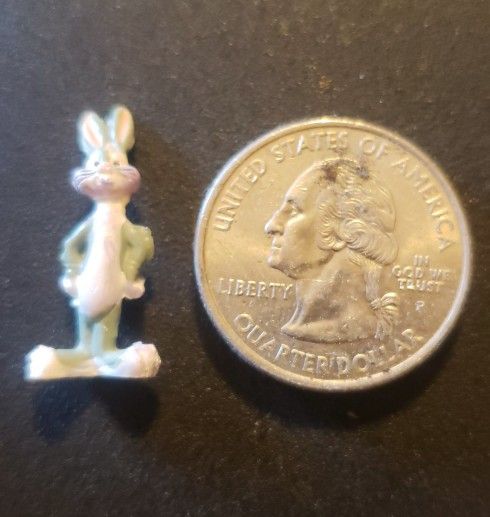 I dare you to find a smaller bugs bunny. He's as tall as a quarter. One of a kind. There's not another one like it. Perfect for the old cartoon lover that has everything.