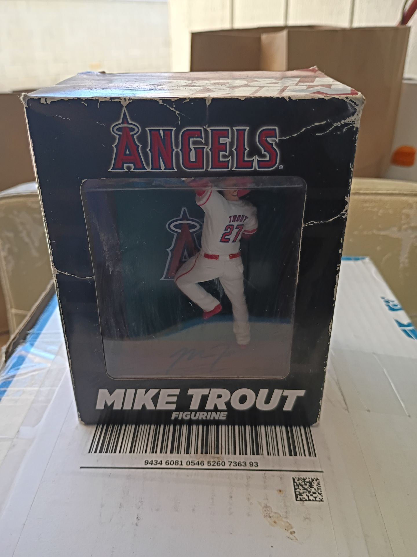 Anaheim Angels Mike Trout climbing the wall Figurine. New in box , some wear on box see pics Price is firm , contact (contact info removed) If item is posted , item is available