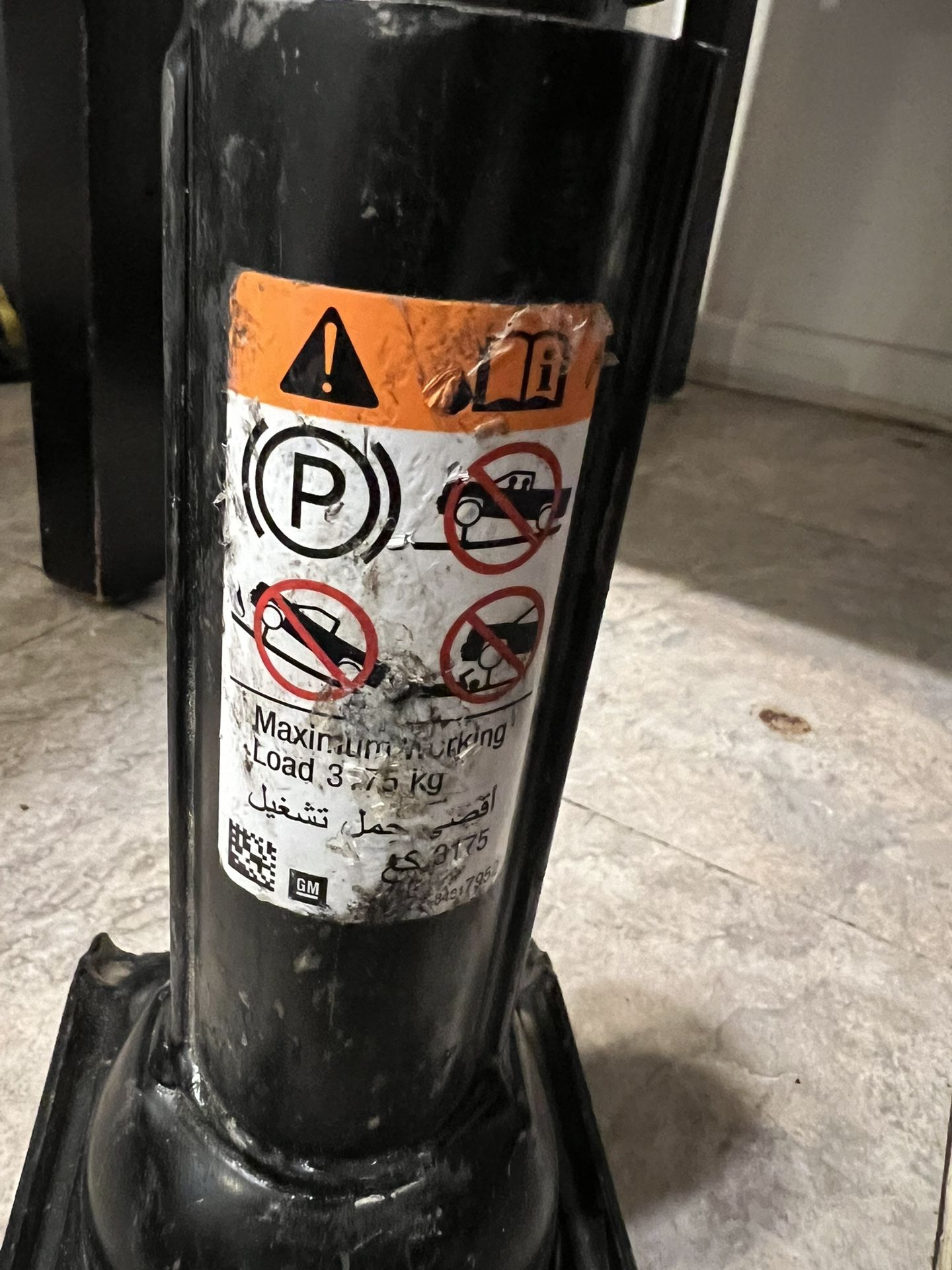 OEM bottle jack used as an emergency spare tire jack and tool for General Motors (GM) trucks. The specific part appears to be compatible with various model years of the Chevrolet Silverado and GMC Sierra, including the 1500, 2500, and 3500 series. Key Details • Maximum Load: The label indicates a maximum working load of 3175 kg (approximately 7,000 lbs). • Part Number: The visible text and search results suggest the part number might be related to (contact info removed)9 or similar GM OEM numbers. • Usage: It is typically stowed as part of a spare tire emergency jack and tool kit in the vehicle.
