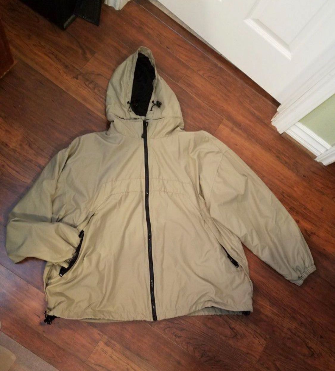 Men's Athletic Works Windbreaker Size L 42/44 Has Removable Hood Has discoloration scrape on. back and tiny hole YES Still AVAILABLE